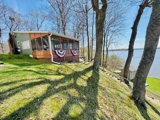 Talk about a VIEW! Sitting at the Peak of a Bank and Overlooking the Sought After Jordan Lake, this Cozy Cottage is Truly One-of-a-kind. While Being Nestled on an End Lot, You Quickly Become Encompassed with Peace and Tranquility as soon as You Arrive. A Warm Fireplace Anchors the Abode, while The Knotty Pine Vaulted Ceiling Embraces the Restful Living Room, along with the Quaint Kitchen. The Large Screened in Porch Boasts Views that Give a See It to Believe It, Type of Feeling. The Brand-New Addition~ the Primary Bedroom, Offers the Same Type of Spectacular Views. Inside, More Gorgeous Updates Completed in 2025 Include~ New Flooring Throughout, Kitchen Cabinets/Countertops, Vanity in the Half Bathroom, Two Mini-Splits, On-Demand Water Heater, Washer/Dryer/Dishwasher, and All New Light Fixtures. The Outside Features New Siding (2025), and Roof (2024~2025), Alongside the Brand-New Addition. The Crawlspace has an Ayres Basement System (2013), and there is an 84 Ft. Seawall (2015). The Dock and Boat-lift are Separately Negotiable